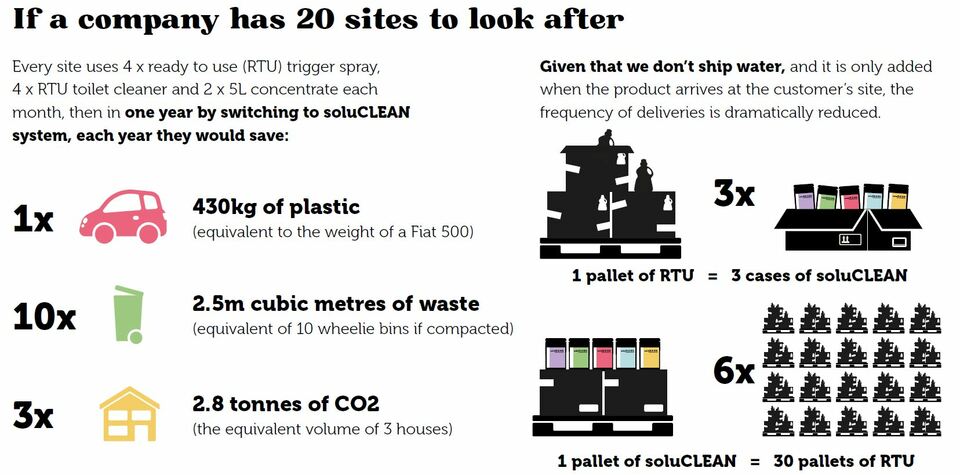 The SoluCLEAN range is an eco-friendly and easy to use range of pre-dosed, concentrated surface cleaning products, encapsulated in fully water-soluble sachets.