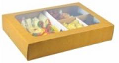 Versatile platter box - sturdy board box with a crash-lock drawer and a big clear eco window to show off your outside catering treats.