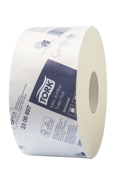 The Tork' Mini-Jumbo Toilet Roll system is big on toilet tissue with over 400 meters per roll, but compact in size. It's the most economical product in the Tork range and also conveniently fits into the Tork Mini Jumbo Toilet Tissue Dispenser.