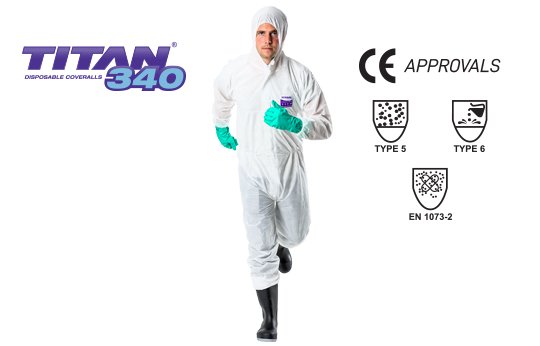 TITAN 340 CE Type 5,6 CAT III Disposable SMS Coverall, Size S - 4XL