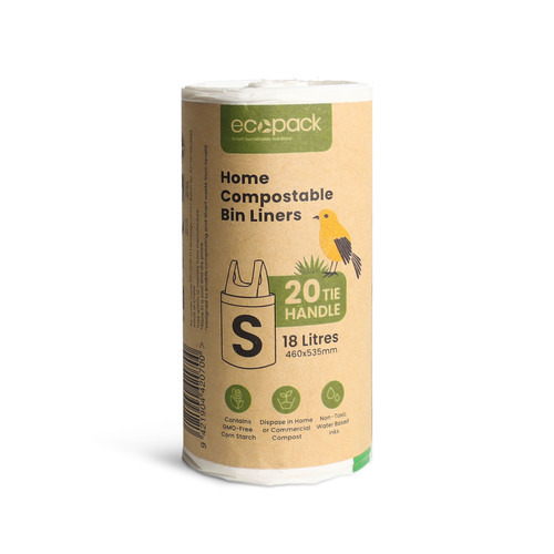 Ecopack eco-friendly 18L bin liners are a perfect fit for small bathroom, kitchen or office bins. Made only from natural corn starch bio-resins and constructed with extra microns, the tidy liners are strong and durable suitable for both household kitchen and commercial use.