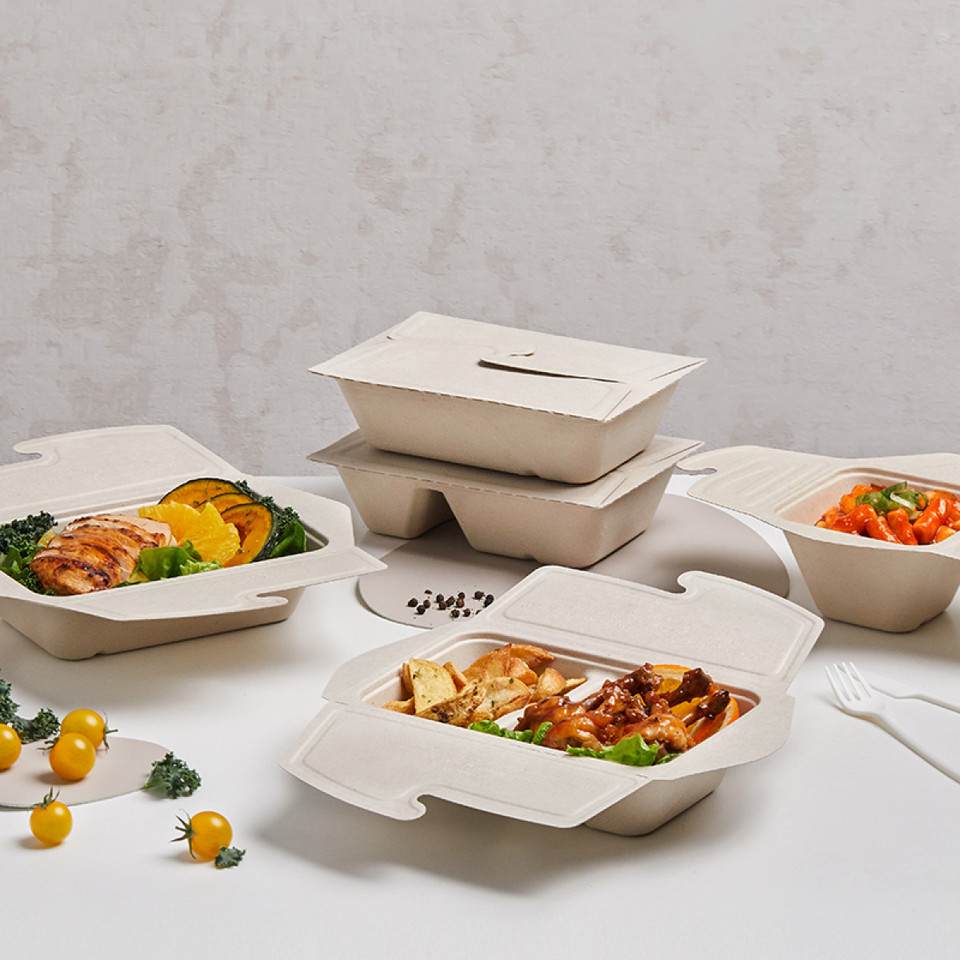 Convenient, easy to use and certified home and commercially compostable.. Made from renewable plant materials - sugar cane and bamboo, these new food boxes have clever folding lids that securely lock into place and are perfect for take-out and delivery meals. Once opened, the folding lid can be easily removed to reveal table-ready dishes for enhanced presentation. Oven, microwave safe and freezer safe with secure double locking lids to prevent gaps from forming to help food retain its temperature.