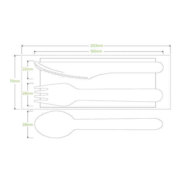 16cm Knife, Fork, Spoon and Napkin Set, FSC 100%, Wood - BioPak