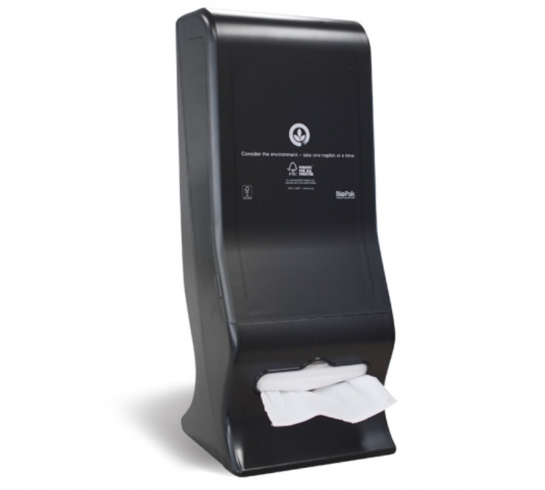 Our one-napkin-at-a-time Single Saver BioDispenser provides up to a 50% reduction in disposable napkin usage while improving hygiene. These napkin dispensers have been designed to allow you the option of inserting a card with your brand and message to the customer on the sides.