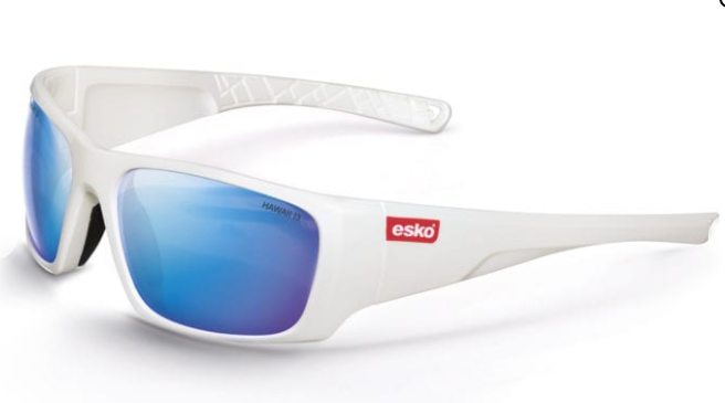 HAWAII Safety Glasses, Pearl White Frame, Blue Mirror Lens - Esko