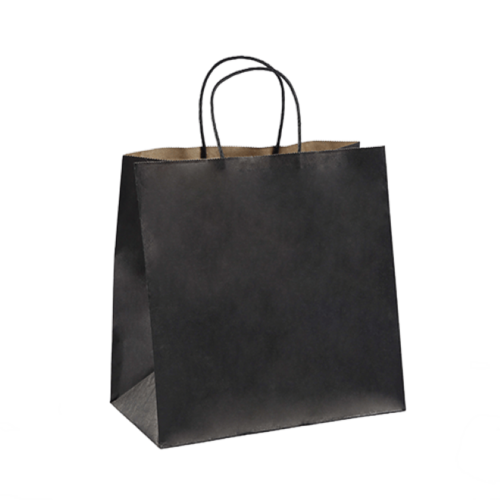 Introducing a new matte black, sleek and stylish take on our classic Small Paper Twist Handle Carry Bag. Paper twisted paper handle bags are strong, sturdy and stand upright on counters for easy loading. The Small paper twist handle bag is ideal for carrying takeaway or home food delivery orders, as well as small goods, cheeses and bakery items. Recyclable Home Compostable Commercially Compostable