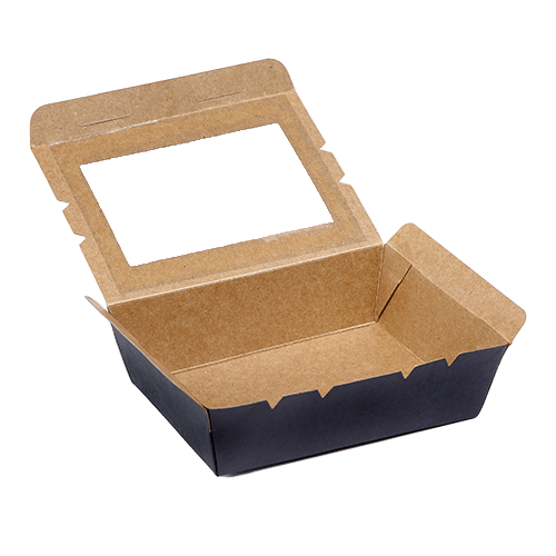 Window lunch boxes are ideal for foods like noodles, pasta, salad, and sushi. The window on top provides premium visibility for the food inside. They are preformed, for easy in-store use, and have smooth surfaces, perfect for branding. They're offered in a new sleek and stylish matte black finish.
