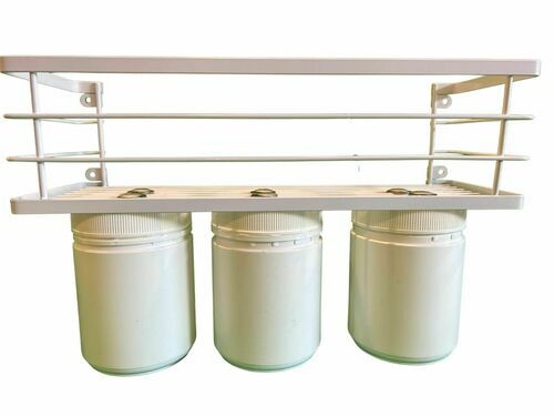 The 500ml storage tubs screw to the lids attached underneath. Store your spray bottles on top.